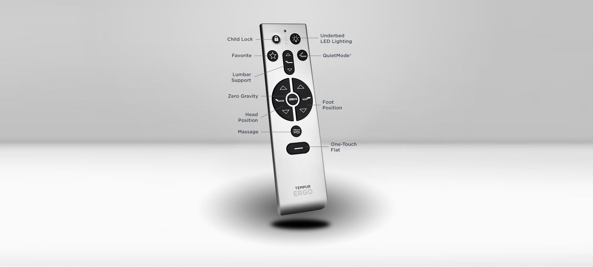 The TEMPUR Ergo 2.0 power base is an essential part of a holistic sleep system. With features including six 12" adjustable legs, under bed lighting, and USB ports, you can have a seamless sleep experience Every night. The wireless remote features one-touch preset buttons and backlit, soft touch function keys so you can easily adjust in the dark. Designed with a zero Gravity preset and child lock feature, the base can elevate your head and feet to closely simulate weightlessness and help take the pressure off your back while you sleep. Quiet mode gently tilts your mattress to an anti-snore position for less nighttime disruption. To top it all off, the TEMPUR Ergo power base includes a two-zone massage feature, allowing you to unwind with one massage zone at the head and one at the feet with three levels of intensity. Available in various sizes.