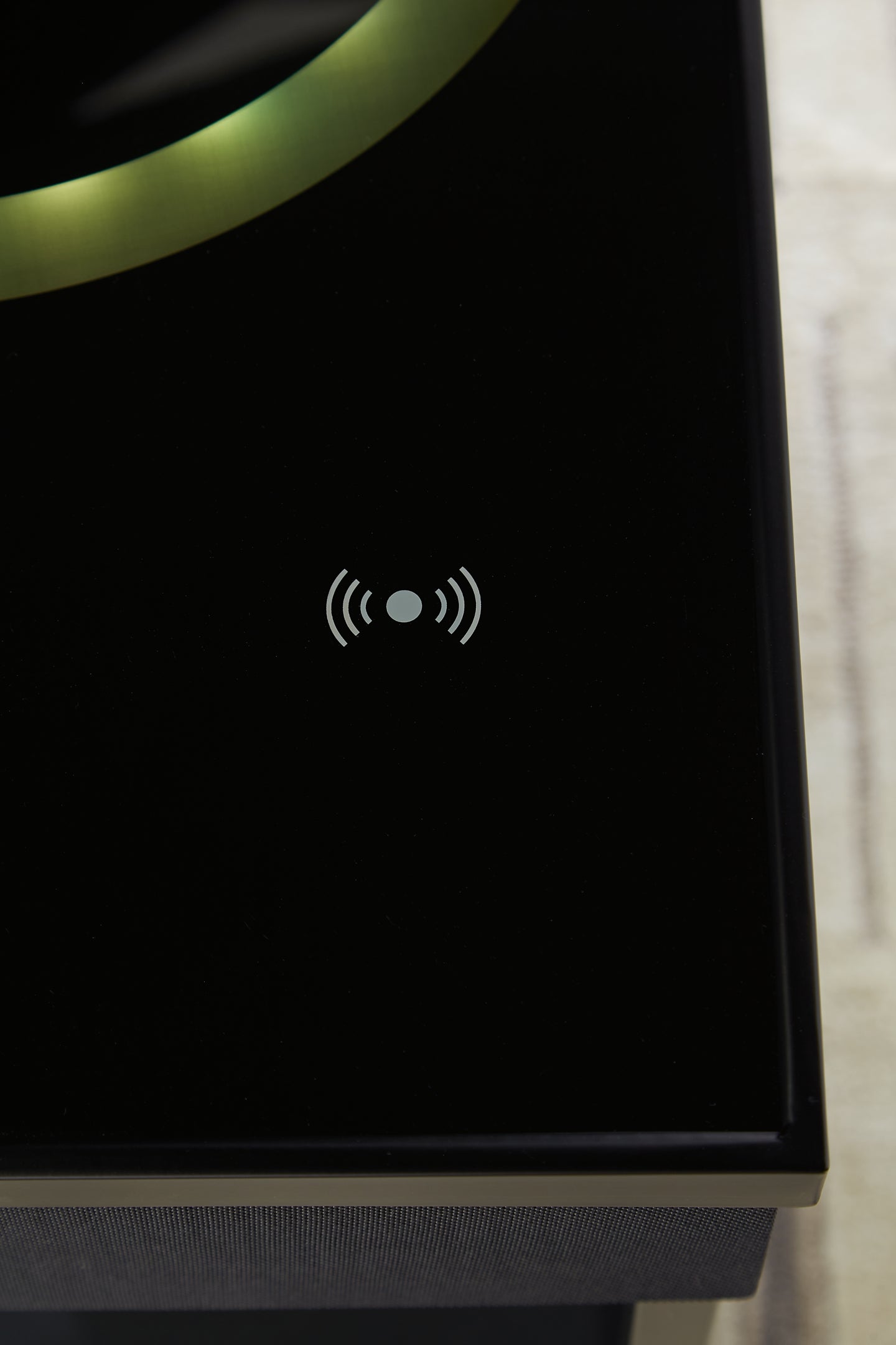 From cleaning day to game night, you love crafting the perfect ambiance with music. With the Gemmet accent table’s built-in audio capabilities, setting the mood is easier than ever. Connect wirelessly to the speakers while you keep devices ready to go with wireless and USB charging options. A contemporary design in a sleek black keeps the piece as fashionable as it is functional.
