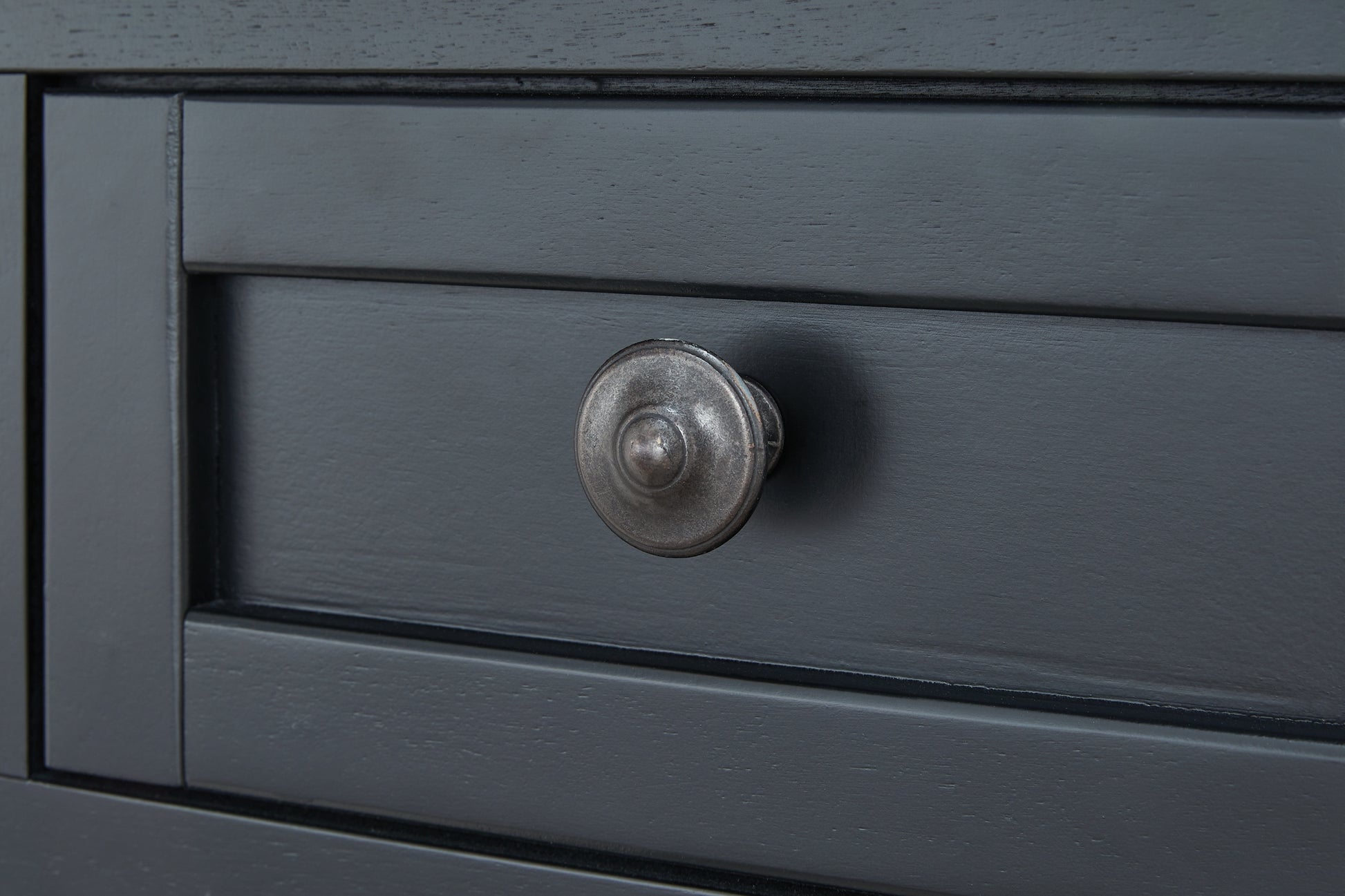 | Details | Made with hardwood solids, mango wood veneer and MDF substrates, Top with butcher block veneer pattern in rich brown wood tone finish, Base with warm satin black finish, Hardware with dark pewter-tone finish, Smooth-gliding drawer with fully finished interior, dovetail construction and heavy-duty ball-bearing side glides, Open shelf, USB-A and USB-C charging ports, Power cord included; UL Listed, Assembly required | |